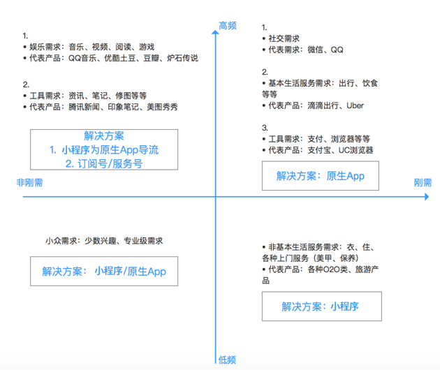 結論:小程序不適用于高頻、剛需的需求場景,該場景下應采用原生App。