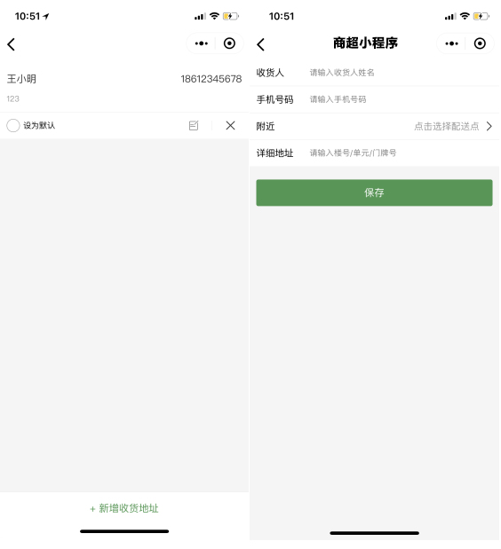 會員僅需輸入手機號、收貨人、門牌號、配送點等信息即可快速添加收貨地址,今后在平臺上下單就可以直接使用之前添加過的收貨地址啦~