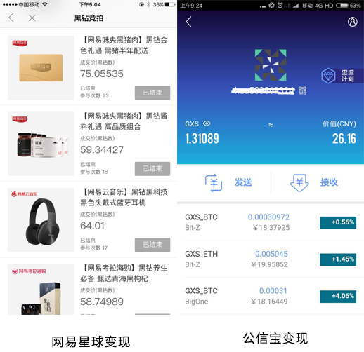 公信寶也緊隨其后已經(jīng)開啟了提現(xiàn)功能。GXS可以直接兌現(xiàn)成人民幣,相比于網(wǎng)易的競(jìng)拍玩法,變現(xiàn)能力更加簡(jiǎn)單粗暴!