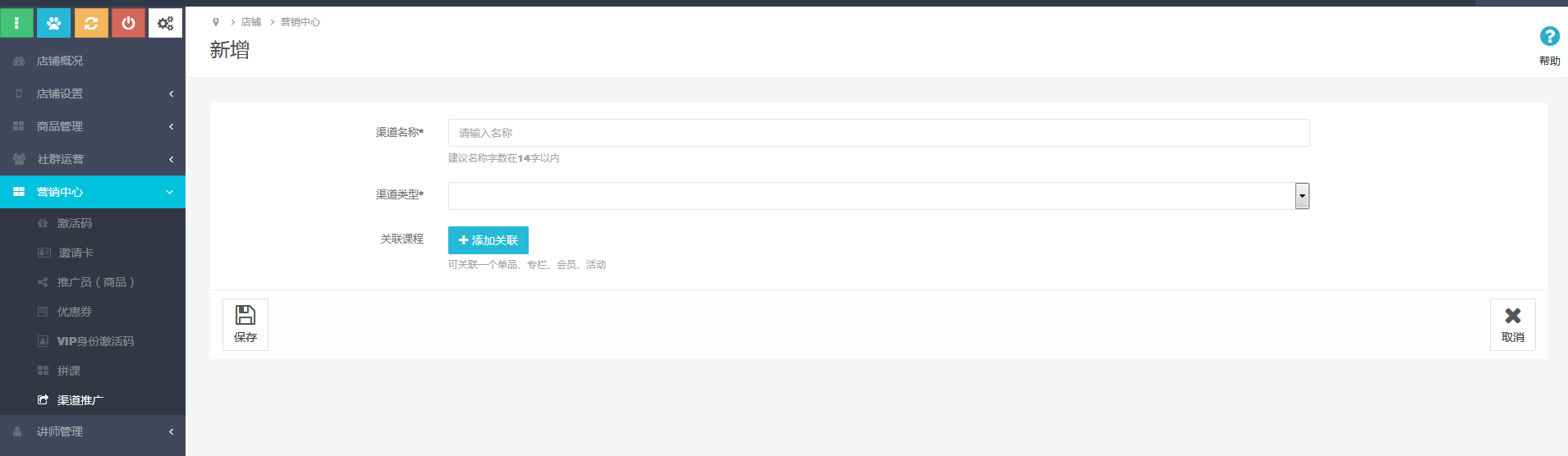 專業(yè)版店鋪在開通企業(yè)模式并綁定公眾號以后,可以在【營銷中心--渠道推廣】中創(chuàng)建不同的渠道二維碼,用戶掃碼二維碼,先關注公眾號后點擊推送的課程進入店鋪,系統(tǒng)自動為用戶打上渠道標簽。