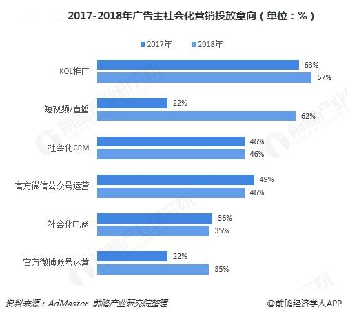 短視頻市場(chǎng)的火熱,讓廣告主對(duì)短視頻的營銷投放興趣大增。在廣告主社會(huì)化營銷投放意向調(diào)查中,2018年短視頻的社會(huì)化營銷投放意向大幅提升,備受廣告主青睞。