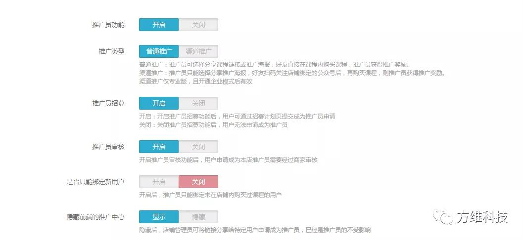 運(yùn)營者可以招募同事、朋友、用戶成為推廣員,推廣員通過邀請新用戶并促使新用戶買課程后即可獲取收益