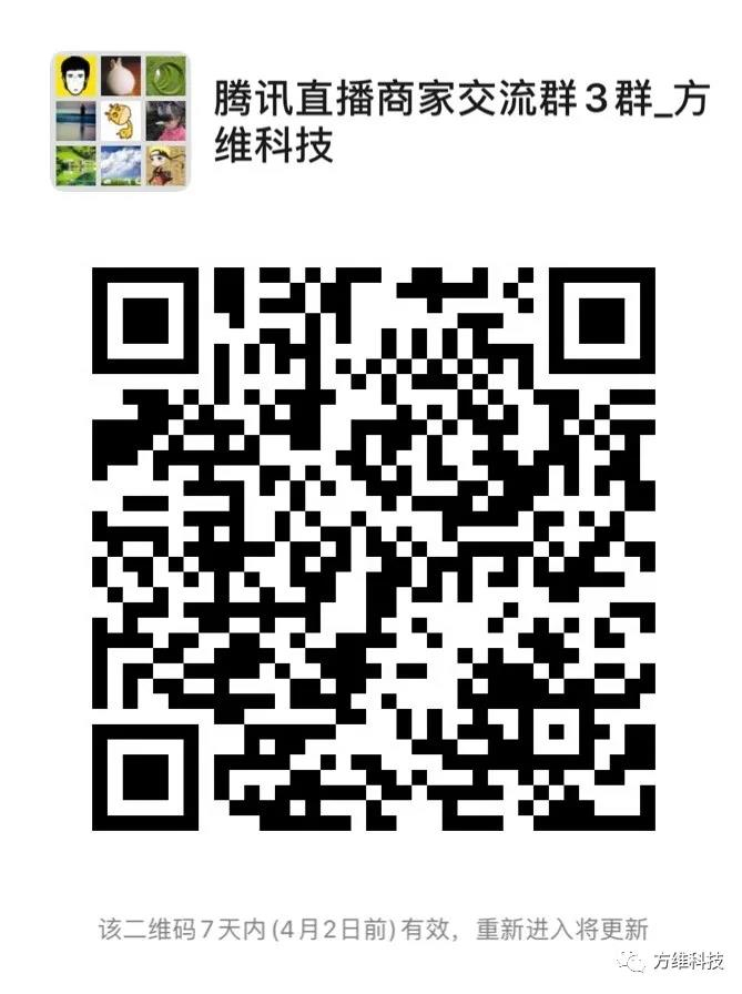 為幫助更多商戶入駐騰訊直播,方維建立了微信交流群,歡迎掃碼加入群聊,共同探索騰訊直播的超級(jí)紅利。