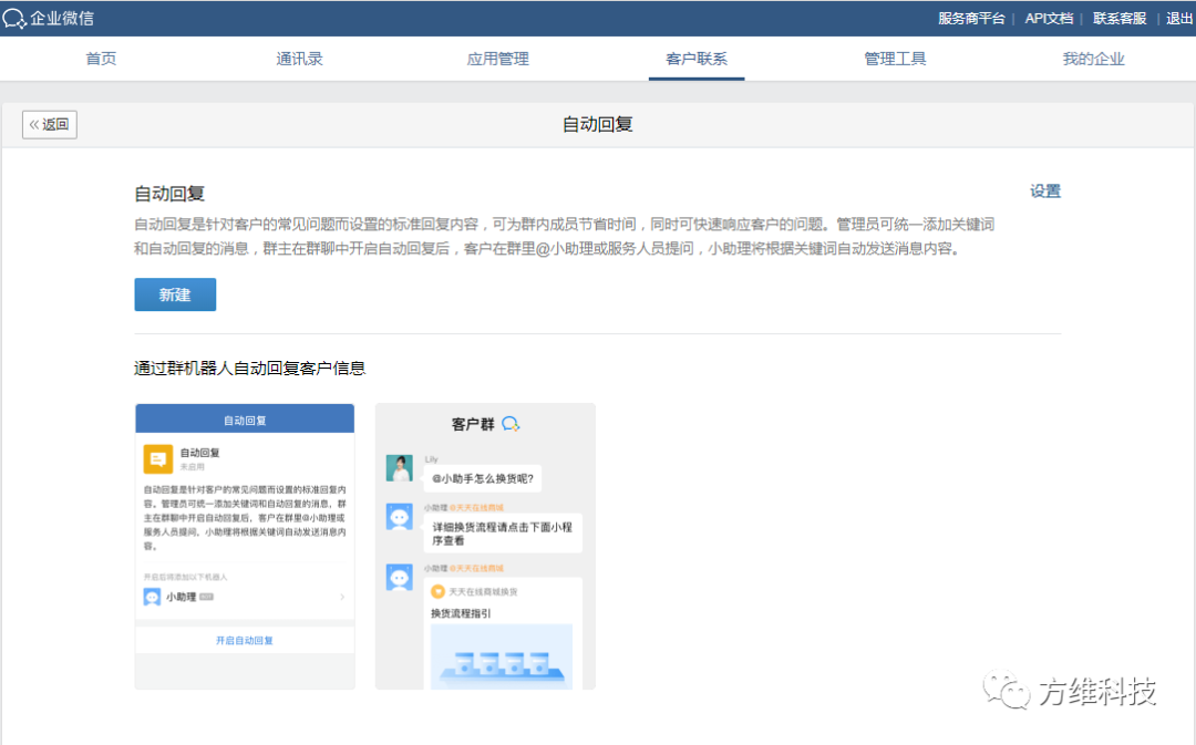 管理員可以統(tǒng)一添加關(guān)鍵詞和自動(dòng)回復(fù)內(nèi)容,開啟自動(dòng)回復(fù)后,客戶在群里@小助理或服務(wù)人員提問,小助理將根據(jù)關(guān)鍵詞自動(dòng)回復(fù)消息。