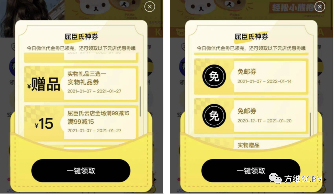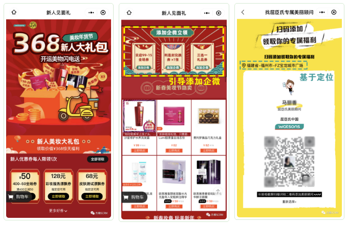 (1) 在你選購(gòu)一圈后告訴你,“現(xiàn)在下單還能免郵”,只要加企業(yè)微信就可以領(lǐng)取。不少新用戶直接就被引入了私域,方便后續(xù)在線上做二次運(yùn)營(yíng)。值得一提的是,屈臣氏是基于定位匹配的顧問(wèn),方便客戶溝通提貨。