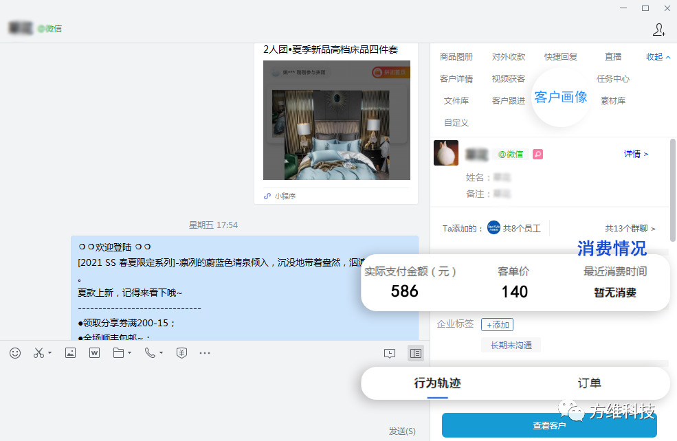 使用方維SCRM聊天側(cè)邊欄,操作簡(jiǎn)單、功能強(qiáng)大。從溝通對(duì)象定位、溝通素材、溝通反饋,全程提升客戶體驗(yàn),促進(jìn)成交。同時(shí),提高員工積極性,實(shí)現(xiàn)推廣效果可量化可考核。是企業(yè)對(duì)銷售環(huán)節(jié)優(yōu)化的不二選擇。
