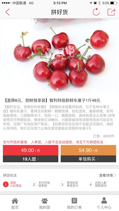 選擇開團(tuán)之后,你就成為了這次“拼團(tuán)”的團(tuán)長(zhǎng),只要在 24 小時(shí)內(nèi)拉到足夠的人數(shù),就可以開團(tuán),享受團(tuán)購(gòu)的優(yōu)惠價(jià)格。如果 24 小時(shí)內(nèi)拉不到足夠的人數(shù)(或商品提前售罄),就算團(tuán)購(gòu)失效。