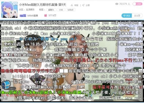 在營銷界,小米也一直是個傳奇的存在。5月10日,小米大屏手機小米Max舉行發(fā)布會,為證明其超耐久性,就在B站和自家的小米直播平臺開啟了一場“小米Max超耐久無聊待機直播”。直播中,推廣主角小米Max被放置在桌上,每隔1小時點亮手機屏幕一次,如果手機有電,則持續(xù)直播。結(jié)果,該直播進行到第15天時,觀看總?cè)藬?shù)已超過了2600萬人,并收獲了約676.7萬禮物和24.4萬的關(guān)注量。