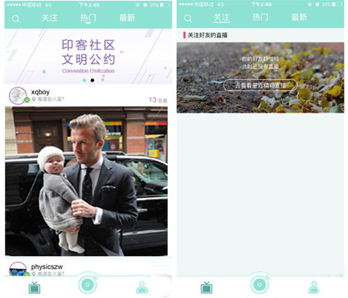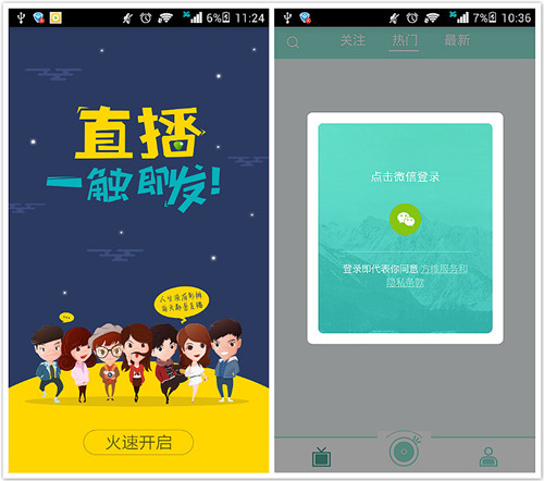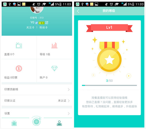 用戶通過底部Tab可以方便地實現(xiàn)看直播、開直播、個人中心三個重要頁面的切換。同時,為了鼓勵用戶成為主播,主動與大家分享、互動,“開直播”的圖標還特意進行了放大處理,以更顯眼、更突出。