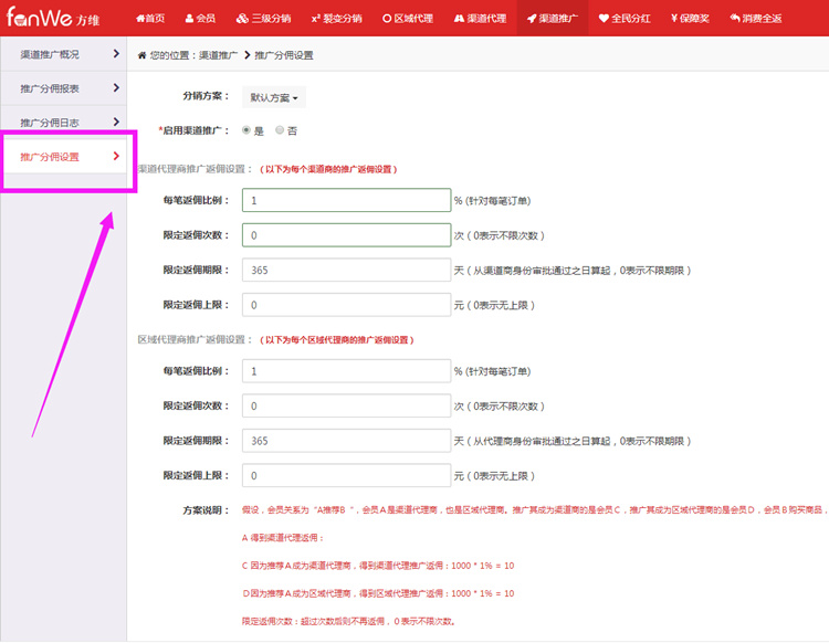 商家按照上述步驟,進(jìn)入方維人人電商系統(tǒng)商家端后臺(tái)啟用渠道推廣,再根據(jù)平臺(tái)自身情況對(duì)渠道推廣員返傭及渠道推廣其他信息進(jìn)行自定義編輯,最后點(diǎn)擊提交即可。