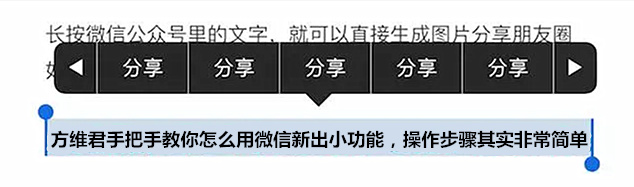 長按微信公眾號文章里的文字,可直接生成圖片分享到朋友圈。
