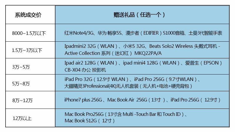 活動內(nèi)容: 活動期間,凡是購買方維系統(tǒng)產(chǎn)品的新老客戶,均可獲得不同金額的禮品。