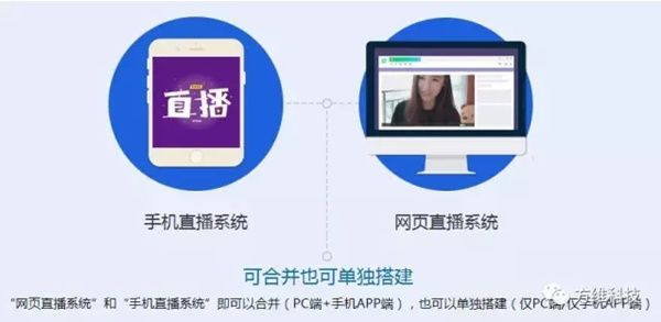 不僅能夠同時擁有(PC端+手機APP端,如游戲直播、教育直播等),也能單獨搭建(僅PC端/僅手機APP端,如美女直播、購物直播等)。